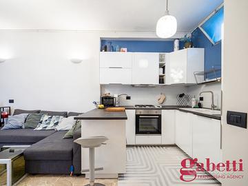 L'appartamento si compone di: ampio ingresso con porta blindata, soggiorno con cucina a vista e balconcino, lavanderia, camera matrimoniale con accesso a ripostiglio in quota, bagno finestrato con comodo box doccia separato.