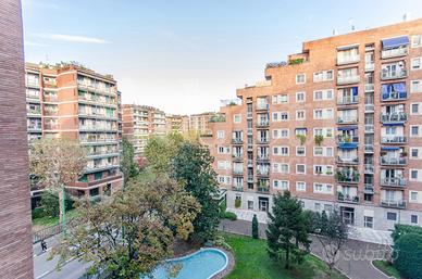 Via Sismondi, in contesto signorile con portineria e grande giardino condominiale, trilocale piano alto.