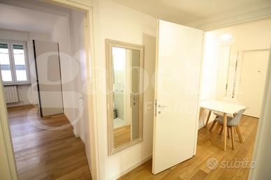In piccola palazzina in corso di rifacimento della facciata, proponiamo grazioso tre locali con angolo cottura e doppi servizi completamente ristrutturato ed arredato. Sito al secondo piano senza ascensore, si compone da un ingresso direttamente nella zona giorno dotata di un balconcino con affaccio interno ed il cucinino. La zona notte ha due camere matrimoniali di cui una con bagno in suite ed una bagno cieco. Completa la proprietà il ripostiglio ed una cantina. Doppia esposizione, luminoso e silenzioso, con parquet in tutta la casa, aria condizionata ed infissi con doppi vetri. Zona servitissima dalle metropolitane linea rossa e lilla e vicina al nuovo parco di City Life. Subito disponibile