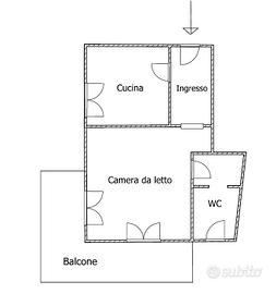 L'ingresso si apre su un disimpegno che da accesso alla cucina abitabile e al soggiorno/camera da letto con ampia balconata.
