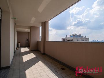 In uno stabile moderno e signorile edificato nel 2007, dotato di triplo ascensore e servizio di portineria attivo tutta la giornata, proponiamo in vendita un elegante attico plurilocale distribuito sugli ultimi due piani (16° e 17°), caratterizzato da ampi spazi interni, grandi terrazzi e una splendida luminosità garantita dalla tripla esposizione sud-est-ovest.