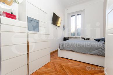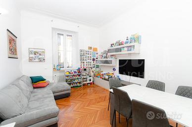 Via Melloni, in signorile contesto d'epoca, ambio bilocale composto da ingresso, soggiorno, cucina abitabile con balcone, camera matrimoniale e bagno finestrato. L'immobile si presenta in ottime condizioni con parquet in tutta la casa, infissi in doppio vetro e aria condizionata e viene affittato completamente arredato completo di tutti i principali elettrodomestici, lavatrice/asciugatrice e lavastoviglie. Libero dal 15/04/2026.