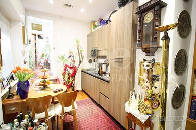In casa medio signorile proponiamo ampio due locali sito al piano rialzato con affaccio su una corte interna, completamente ristrutturato recentemente. L'immobile si presenta con un ingresso sulla zona giorno con la cucina a vista, una camera matrimoniale ed un bagno con box doccia. Parquet in tutti gli ambienti, aria condizionata, porta blindata ed un solaio completano la proprietà.
