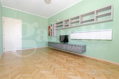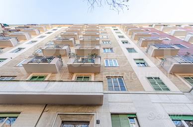 Piazzale Brescia, Via Osoppo, in signorile contesto anni 50 con servizio di portineria mezza giornata e ascensore, ampio trilocale composto da ingresso, cucina abitabile con balcone verandato, due camere da letto matrimoniali, soggiorno con balcone, grande ripostiglio e bagno finestrato.
