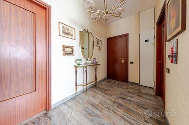 L'appartamento, situato al primo piano con doppia esposizione angolare, risulta composto da: ingresso, soggiorno doppio con accesso alla balconata, cucina abitabile, disimpegno notte, 2 ampie camere da letto matrimoniali, doppi servizi, ripostiglio e cantina.