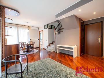 Attico e superattico con terrazzi in vendita - Milano, zona Crescenzago Nel cuore della zona Crescenzago, quartiere ben servito e in continua riqualificazione, proponiamo in vendita elegante attico su due livelli (settimo e ottavo ed ultimo piano) inserito in contesto signorile con portineria, ascensore e curato giardino condominiale. La zona è particolarmente apprezzata per la presenza della metropolitana M2 Crescenzago, che collega rapidamente al centro di Milano, oltre a numerosi mezzi di superficie, supermercati, scuole, aree verdi e servizi di ogni genere, rendendo l'immobile ideale sia per famiglie che per chi cerca comfort e comodità negli spostamenti. L'appartamento si presenta in ottimo stato ed è libero subito, caratterizzato da una generosa metratura e da una piacevole doppia esposizione est-ovest che garantisce luminosità durante tutta la giornata. Al piano settimo troviamo un ampio ingresso che conduce al soggiorno doppio, valorizzato da spazi ariosi e ben distribuiti, una cucina abitabile, una camera, un bagno finestrato e uno splendido terrazzo di circa 40 mq, perfetto per momenti di relax o convivialità all'aperto. Il piano superiore, collegato da scala interna, ospita la zona notte con due camere da letto, un bagno finestrato organizzato con zona lavabo separata, due pratici ripostigli, una veranda e un secondo terrazzo di circa 10 mq. Gli spazi sono stati ottimizzati nel tempo con interventi mirati, tra cui la creazione di nicchie e una cabina armadio, oltre all'ampliamento autorizzato di una porzione del piano superiore oggi adibita a studio. Completano la proprietà tre balconi, una cantina di pertinenza e la possibilità di acquistare separatamente box e posto auto. Le finiture includono parquet in tutta la casa, infissi con doppi vetri, aria condizionata con impianti recenti, porta blindata e tapparelle elettriche, mentre cucina e bagni presentano rivestimenti in ceramica. È inoltre presente la predisposizione per zanzari