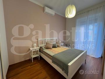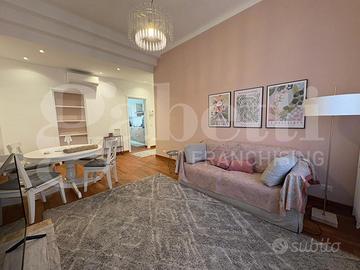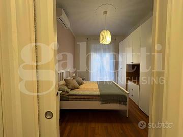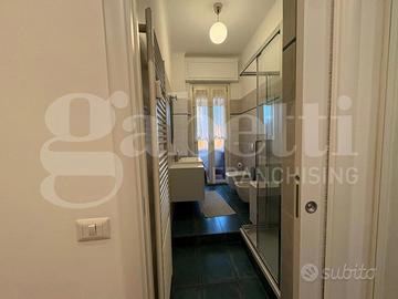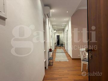 L'appartamento si presenta completamente ristrutturato, la pavimentazione è in parquet ad esclusione del bagno che è in gres-porcellanato, gli infissi sono tutti a doppio vetro con tapparelle elettriche e le porte interne sono tutti a scomparsa.