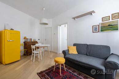 In palazzo d'epoca con servizio di portineria e gradevole cortile interno, proponiamo in locazione un grazioso bilocale ristrutturato ed arredato con gusto. L'appartamento si trova al terzo piano, servito da ascensore; la superficie, di circa 50 mq, è organizzata in modo piacevole e funzionale: ingresso, soggiorno, cucina disimpegnata, camera da letto e bagno. Tranquilla esposizione interna sul cortile. Termo autonomo.