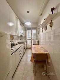 L'immobile posto al primo piano con doppio ascensore è così composto: soggiorno con balcone, cucina abitabile con balcone, camera da letto, bagno ristrutturato e finestrato, ripostiglio.