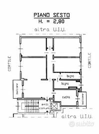 L'appartamento è composto da: soggiorno doppio con balcone, cucina abitabile completa di arredo con un'ulteriore balcone, tre camere da letto, due bagni e ripostiglio.