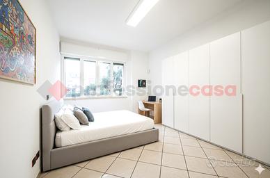 Sito a piano rialzato di un piccolo stabile anni 60, con barriere architettoniche, in una via silenziosa a senso unico, l'immobile pronto per essere abitato si presenza in ottime condizioni, con infissi schuco PVC, aria condizionata daikin canalizzata in tutti gli ambienti, porte a scrigno laccate, pavimentazione in ceramica chiara. Ideale come pied-à-terre o per coppie giovani.