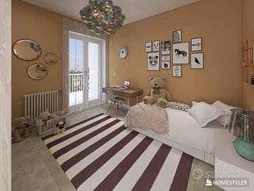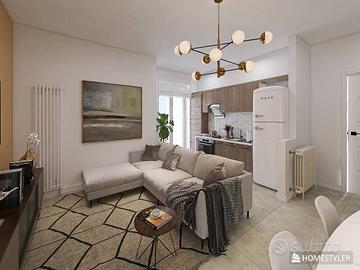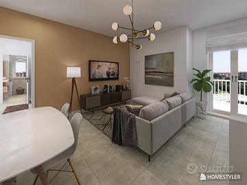 Oggetto di ristrutturazione in fase di completamento, è composto da soggiorno con cucina a vista, due camere matrimoniali e due bagni, uno dei quali en suite, oltre a ripostiglio, tre balconi e cantina.