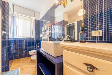 Situato al primo piano di un condominio di otto piani ha doppio affaccio, sulla tranquilla via di accesso attraverso un terrazzino arredato e vista aperta sul cortile interno con piacevole giardino condominiale che gli dona molto luminosità.