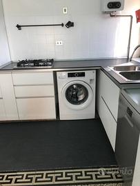Lappartamento è composto da cucina a vista (arredata e corredata di elettrodomestici), soggiorno (arredato con tavolo, sedie, divano e credenza), e bagno finestrato con box doccia.