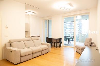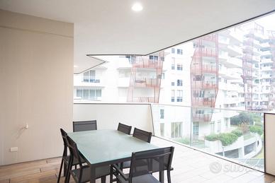 Milano - City-Life, nella residenza di Daniel Libeskind in via Spinola 8, al piano primo, disponiamo di prestigioso appartamento dove il design architettonico, la sostenibilità ambientale e la qualità della vita si uniscono per definire il nuovo concetto di lusso metropolitano. Lo spazio esterno formato da un ampio terrazzo coperto che percorre tutto il perimetro dell'immobile offre un affaccio riservato sui preziosi ed eleganti giardini interni. La proprietà beneficia di servizi esclusivi tra cui la portineria diurna, la sicurezza attiva 24 h ed una palestra attrezzata. L'appartamento è composto da un ampio salone, una cucina abitabile a vista con pareti perimetrali trasparenti che ci portano all'esterno sul terrazzo, due camere da letto di cui una suite con cabina armadio e bagno privati oltre ad un secondo bagno. Spazi perfetti per ospitare una famiglia o per garantire la massima vivibilità ad una coppia di professionisti. L'unità immobiliare è dotata di un sistema di riscaldamento centralizzato, con contabilizzatore di calore, per garantire un elevato confort abitativo e una gestione efficiente dei consumi. Gli interni dell'appartamento sono caratterizzati da un design moderno ed elegante, con pavimenti in parquet e impianto di riscaldamento a pavimento per un'atmosfera calda e accogliente. La cucina, a vista, è arredata con mobili di alta qualità, garantendo un ambiente funzionale e di pregio. Il giardino comune, curato e ben tenuto, offre un'area verde dove trascorrere piacevoli momenti di svago e relax all'aria aperta. Completano la proprietà un box auto doppio in larghezza di generose dimensioni con basculante automatizzata ad 150.000, perfetto per ospitare due veicoli. L'immobile si trova all'interno di un edificio residenziale di 6 piani, dotato di una hall d'ingresso a doppia altezza ultimata con materiali di ultima generazione, di un moderno ascensore per garantire un...
