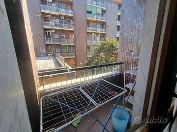 L'ingresso disimpegna le due camere da letto e il soggiorno dal quale si accede al cucinotto. Completano la proprità il bagno, un ripostiglio e due balconi.