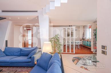 Alle porte della città, in uno splendido contesto residenziale molto curato e ben tenuto, con parco privato di oltre 10.000 mq, campo da tennis riservato ai residenti e servizio di portineria intera giornata, proponiamo in vendita esclusiva un attico su due piani con terrazzi e magnifica vista aperta sul verde del parco.