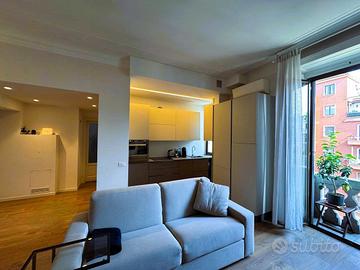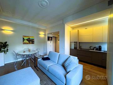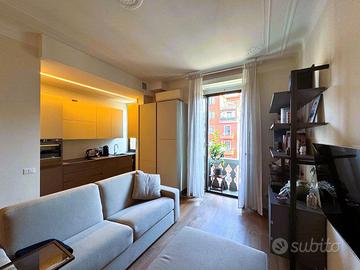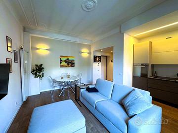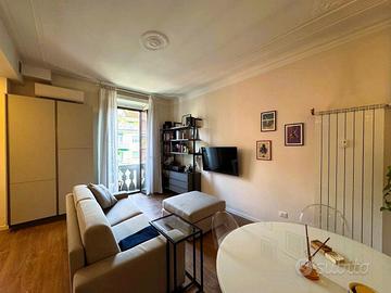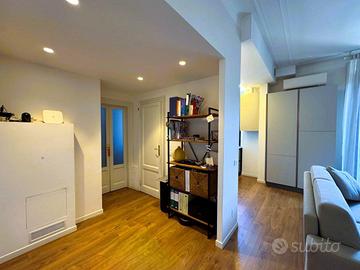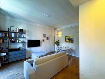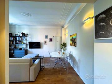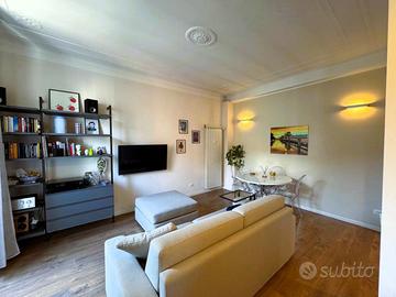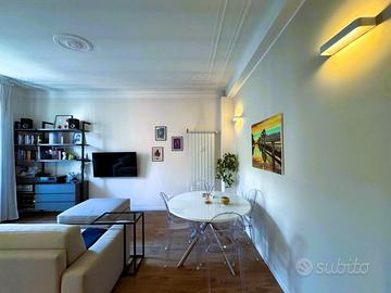 L'appartamento, anche grazie alla recente ristrutturazione, si presenta in ottime condizioni con ogni spazio ben pensato e sfruttato, mischiando l'epoca al moderno come ad esempio per i soffitti, oggi si propone in un'uniforme pavimentazione effetto legno (eccetto il bagno) infissi doppio vetro camera, aria condizionata inverter (caldo/freddo) con split nella zona giorno e nella camera, riscaldamento centralizzato a radiatori con termo-valvole e porta blindata.