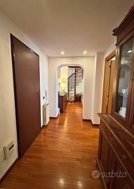 Zona piazza San Giovanni,mq 151 ca, l' abitazione disposta su due livelli si trova all' interno di una piccola e ben rifinita palazzina di soli due condomini. Ad accoglierci l'ingresso che disimpegna la zona giorno dalla zona notte; Da qui un arco in muratura ci introduce nell' ampio e luminoso soggiorno, reso ancora piu' accogliente dal pregiato parquet che e' un filo conduttore di tutto l' appartamento. Il living si apre direttamente sulla graziosa verandina con tende da sole e vano tecnico ben celato, da sfruttare ad esempio per un aperitivo al tramonto nelle belle sere d'estate. Accanto al salone ma separata troviamo la cucina abitabile; volendo, per chi ama vivere gli ambienti unici, c'è la possibilita di metterli in comunicazione buttando giù la parete divisoria. Tutto l' immobile e' dotato di impianti di climatizzazione recentissimi, impianto di allarme di ultima tecnologia e riscaldamenti autonomi. Proseguendo troviamo la zona notte separata da una bella e robusta porta a scrigno, con una prima camera matrimoniale, un bagno padronale con vasca elegantemente rifinito da bellissimi sanitari; una parete funge da intellegente divisorio per la zona lavanderia e doccia. Per finire il primo piano un' ultima camera da letto. Salendo la particolare e di design scala a chiocciola giungiamo al secondo piano dove ci accoglie la splendida e confortevole suite, molto luminosa con ben due finestre velux apribili sul tetto e una finestra con affaccio sul prospetto frontale della palazzina. La suite e' dotata di allacci per realizzare eventualmente una zona cottura e rendere cosi l' ampio spazio perfettamente autosufficiente. Celato da una porta a scomparsa l' utilissimo ripostiglio che sfrutta tutto la spazio del sottotetto. Bagno en su