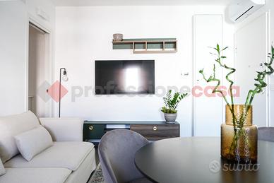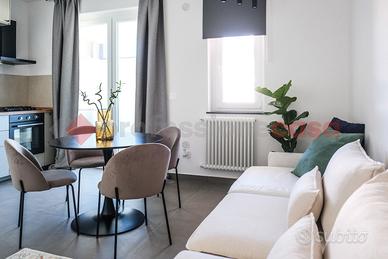 L'appartamento, di circa 60 mq, si distingue per gli ambienti luminosi e ben distribuiti: ingresso su zona giorno accogliente e moderna con cucina a vista completamente attrezzata, camera da letto matrimoniale, bagno dal design contemporaneo con finiture di qualità, comodo balcone ideale per momenti di relax con vista sul Castello.