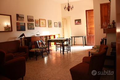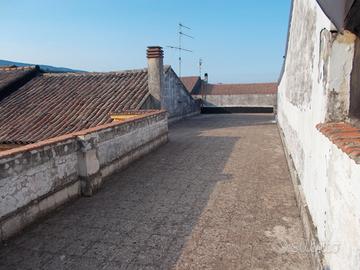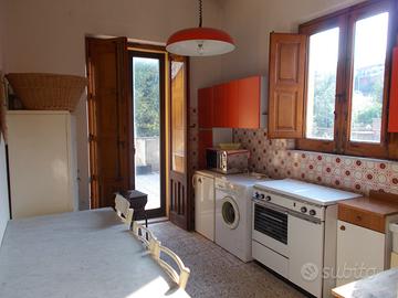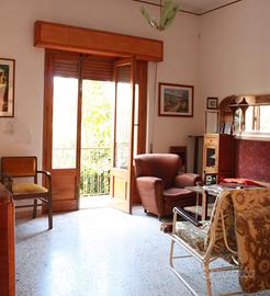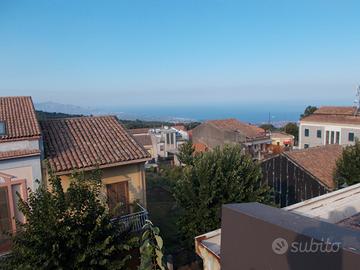 Appartamento sito in centro a Milo, piano primo, 4 vani, 1 salone doppio, 2 bagni, cucina separata, terrazza a livello di 37 mq e terrazza soprastante 65 mq con vista panoramica, comproprietà del terreno retrostante di 277 mq. Luminosissimo con esposizione est con balcone su Corso Italia ed ovest su terreno in comproprietà, l'unità è in buone condizioni ed abitabile con le rifiniture degli anni 80. No impianto termico. Classe energetica E