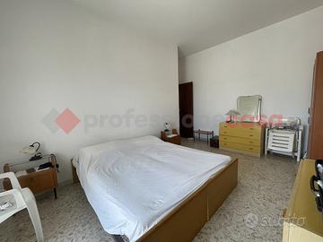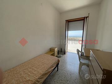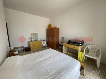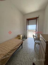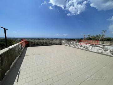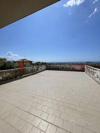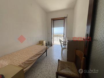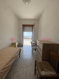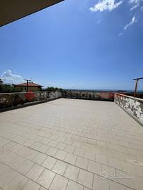L'appartamento, in buone condizioni interne, è composto da un ampio corridoio, cucina abitabile, bagno, una camera da letto matrimoniale e una cameretta, entrambe con accesso diretto al terrazzo a livello, panoramico di 40 mq con vista mare.