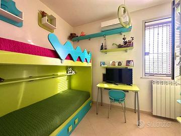 Limmobile, dalla superficie commerciale di circa 150 mq, si presenta in ottime condizioni ed è così composto: ingresso su ampia e luminosa zona living, camera da letto matrimoniale, un comodo ripostiglio, due camerette e due servizi igienici entrambi con finestra. Punto di forza della proprietà è lampio terrazzo, ideale per trascorrere momenti di relax e convivialità, immersi nella tranquillità della zona circostante.