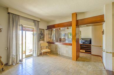 L'appartamento è composto un grandissimo open space che accorpa tranquillamente tre vani, , due camere da letto di cui una con bagno in camera, una lavanderia con servizi, cucina abitabile.