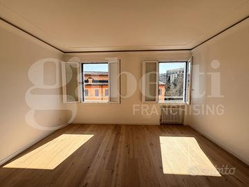 Residenza di rappresentanza nel cuore più elegante di Modena Nel tratto più esclusivo di Corso Canalchiaro, all'interno di un contesto riservato e signorile, proponiamo una residenza di ampia metratura recentemente ristrutturata, situata ad un piano alto servito da ascensore. L'immobile si distingue per la luminosità degli ambienti e per una distribuzione degli spazi pensata per coniugare rappresentanza e comfort quotidiano. Il salone principale, ampio e arioso, si presta perfettamente ad accogliere momenti conviviali in un contesto di grande eleganza, mentre la zona notte garantisce privacy e tranquillità. La recente ristrutturazione ha valorizzato ogni ambiente con finiture di qualità e soluzioni moderne, assicurando al contempo elevati standard di efficienza energetica (classe A2). Una soluzione ideale per chi desidera vivere il centro di Modena con spazi generosi, comfort contemporaneo e un contesto di alto profilo. Proprietà di difficile reperibilità in questa posizione. È inoltre disponibile, con trattativa separata, un comodo garage nel piano interrato, particolarmente raro per la zona e adatto a vetture di dimensioni compatte. Misure garage: h area garage comune 187 cm h entrata 170 cm (ma internamente arriva a 188 cm) larghezza entrata 195 cm profondità 590 cm Gli interventi condominiali hanno previsto cappotto termico e rifacimento balconi, garantendo un'abitazione moderna, efficiente e di grande valore. Le finiture di pregio includono parquet in tutti gli ambienti e ceramiche Mirage, per uno stile raffinato e senza tempo. Informazioni e visite esclusivamente su appuntamento
