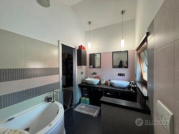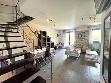 Moncalieri: vicino al 45° parallelo, in zona comoda alla tangeziale e autostrade, in piccolo contesto signorile e recente, appartamento sito al 1° piano ed ultimo, di ingresso living su salone, cucina abitabile, camera e servizio; mansarda rifinita collegata internamente da una comoda scala in legno, composta da un disimpegno, due camere e bagno. Al piano interrato, un locale cantina e un locale autorimessa. Al piano terreno un postoa auto. Il riscaldamento è autonomo. L'appartamento è dotato di zanzariere, tapparelle elettriche, impianto di condizionamento, antifurto volumetrico e perimetrale e riscaldamento a pavimento.