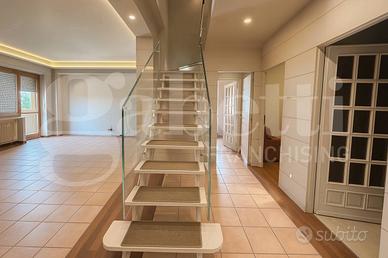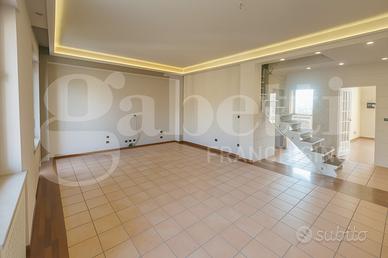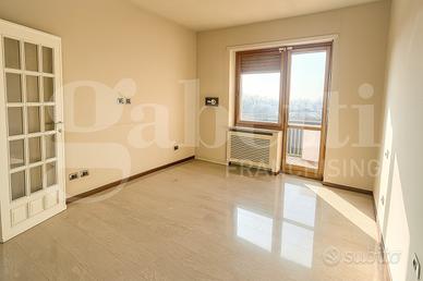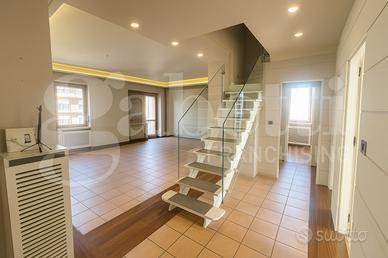 Moncalieri Zona Pleiadi (Strada Villastellone n 28/ter) Alloggio al 4° ed ultimo piano più mansarda per un totale di circa 200 mq cosi composto: salone ampio, una camera da letto ,bagno, tinello con cucinino, due ampi balconi con vista panoramica per un totale di circa 100 mq, collegate tramite scala interna in Vetro troviamo altre 2 camere mansardate ,un bagno, un disimpegno e altra mansarda grezza adiacente con possibilità di recuperare un altro bagno e un altra camera di generose dimensioni il tutto anche con accesso completamente indipendente. Conclude la proprietà un box e una cantina. Comodissimo a tutti i servizi, a circa 50 metri dalla nuova piscina e un km dall' imbocco autostradale.