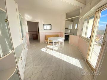 Internamente, l'appartamento è ben strutturato e accogliente. Entrando, sarete accolti da un disimpegno che conduce alla camera matrimoniale, alla zona living con cucina a vista, al bagno e al balcone di 10 mq con vista mare, il luogo ideale per rilassarsi e godersi il panorama.