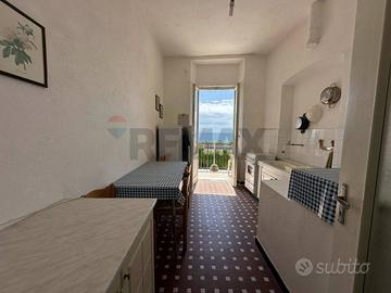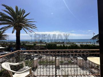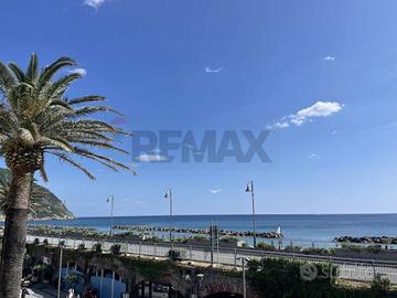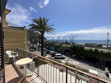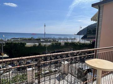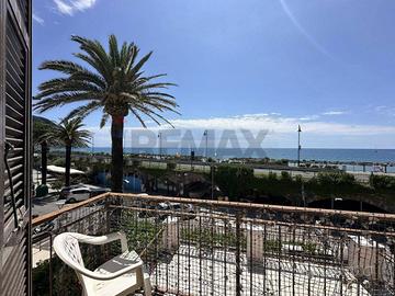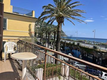 Il luminosissimo appartamento è composto da: soggiorno, cucina, due camere da letto, bagno e balcone con splendida vista mare con esposizione frontale sull'intero tratto costiero.