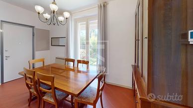 Lappartamento, disposto interamente su un unico livello, si apre su un ampio e luminoso soggiorno e una cucina abitabile, completa di ogni confort, separata. Dal soggiorno si accede a un primo giardino privato, mentre dalla cucina si apre una veranda che conduce a un secondo giardino di generose dimensioni, che circonda gran parte della proprietà e offre spazi ideali per momenti di relax e convivialità allaperto.