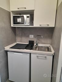 Il monolocale, ideale per un single, è dotato di wi-fi, aria condizionata, riscaldamento autonomo, tv, letto matrimoniale, frigorifero, forno a microonde, piano cottura ad induzione, lavatrice, asse da stiro e ferro, scarpiera, armadio, poltrona, tavolo allungabile e due sedie, porta blindata, disponibilità di balcone per stendere, ingresso con tavolino e due sedie. Affitto mensile 350,00 euro + 200,00 euro mensili in cui sono comprese tutte le utenze di acqua, luce, gas, wifi e le spese di condominio con ascensore privato.