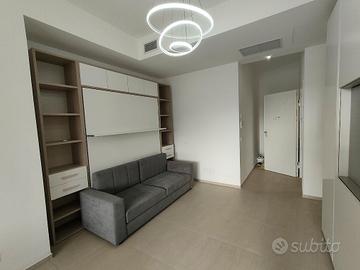 Il monolocale, COMPLETO DI ARREDAMENTO NUOVO, consiste in un grande ambiente open-space, utilizzabile in parte a zona relax/notte ed in parte a zona pranzo con affaccio sul balcone esposto a sud, oltre al comodo bagno con grande box doccia.