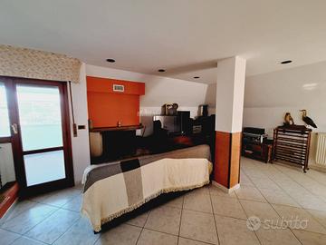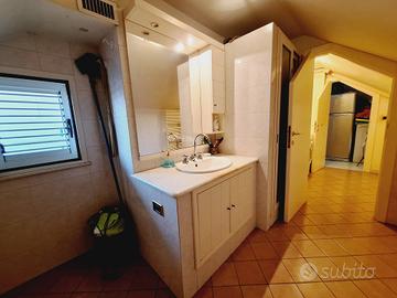 Al secondo livello di 80 mq calpestabili, si accede tramite scala interna, con alcune spiovenze ai lati, altezza massima 2,23 mt, minima 0.60 mt, ove sono stati ricavati vari ripostigli nel sottotetto, ampio salone con soggiorno e cucina arredata a vista, bagno con doccia, tre balconi per complessivi mq 15.