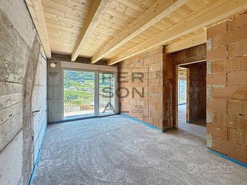 BASSA ATESINA - MONTAGNA - ID_I-753: Nel cuore verde della BASSA ATESINA, proponiamo in casa di sole 6 UNITA' un APPARTAMENTO di 141 MQ ALL'ULTIMO piano di NUOVA COSTRUZIONE in CASACLIMA A+. Limmobile è sviluppato su 2 LIVELLI con ingresso al SECONDO piano servito da ASCENSORE composto da un ampia VERANDA coperta all'ingresso, spaziosa e luminosa ZONA GIORNO con CUCINA a VISTA esposta a SUD, BAGNO cieco con LUCERNARIO, due STANZE da LETTO (una MATRIMONIALE ed una SINGOLA) ed un BALCONE PANORAMICO esposto a SUD, al piano SUPERIORE due STANZE da LETTO (una MATRIMONIALE ed una SINGOLA) BAGNO finestrato ed un SOLARIUM PANORAMICO esposto a SUD/OVEST. Completa l'immobile un'ampia CANTINA. Possibilità di acquistare 1/2 POSTI auto COPERTI in GARAGE condominiale ad Euro 20.000 cadauno.