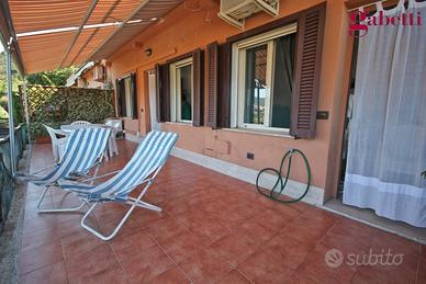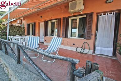 PORTO SANTO STEFANO - zona alta del paese, nelle immediate vicinanze del residence CARRUBO, vendesi moderno appartamento con ampia terrazza vista mare, arredata per vivere all'aperto.