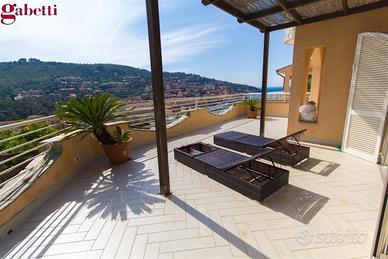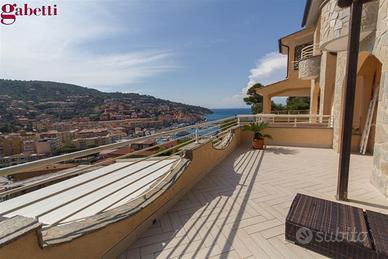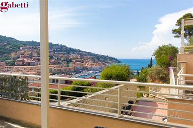 PORTO SANTO STEFANO - sopra il porto, zona Collina del Valle, recente costruzione del 2010, vendesi rifinito ed elegante appartamento su due livelli con grandi terrazze vista mare e garage doppio, con piccolo giardino di pertinenza.
