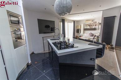 Il soggiorno è ampio e molto luminoso, con moderna zona cottura ad isola, scelta fra marche di pregio, e zona pranzo, con grande bagno dotato di vasca e bagno turco, con piccolo vano adibito a camera da letto singola.