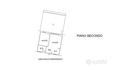 L'appartamento misura 45 mq, la terrazza 46 mq, la cantina mq 3, pertanto la metratura commerciale è mq 55