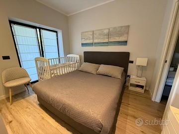 nella zona notte, una camera da letto matrimoniale con bagno interno, un secondo bagno con vasca, ed un altro piccolo ambiente nel quale è stato organizzato un letto singolo.