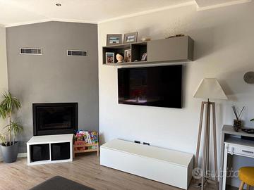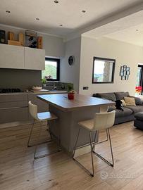 All'interno le ampie vetrate conferiscono molta luce alla zona giorno, dotata anche di un moderno camino ad angolo ed una cucina a vista;