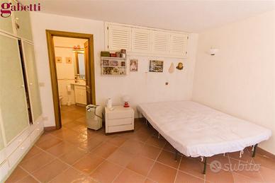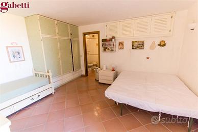 Salendo pochi gradini interni si accede alla grande camera da letto, anch'essa con vista mare, e a un bagno ampio e finestrato.