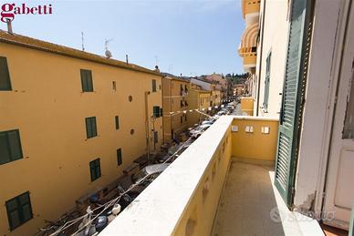 Ha un balcone che si affaccia su via Lambardi e vede anche uno scorcio di vista sul porto.
