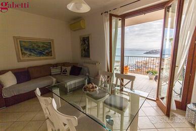 PORTO SANTO STEFANO - Via Panoramica, parte alta del centro, disponibile moderno appartamento con terrazza vista mare e box auto privato.