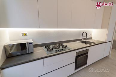 Composto da ampio salone, molto luminoso essendo dotato di 3 finestre ed una porta finestra che esce sul terrazzino, angolo cottura, 2 camere da letto, ciascuna con il proprio bagno interno;