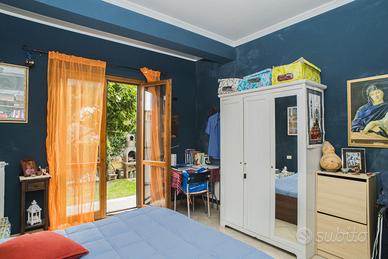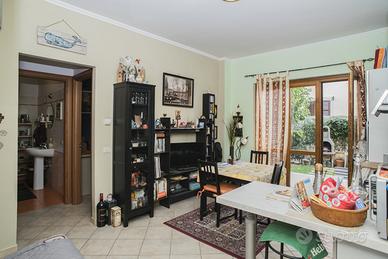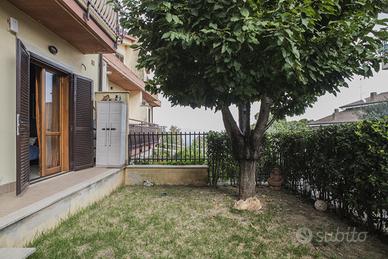 L'immobile di circa 45 mq è composto da luminoso soggiorno con angolo cottura, da cui accediamo direttamente al giardino privato di circa 40mq, dove poter mangiare e passare momenti di convivialità, con accesso facilitato dalla zona giorno, un piccolo disimpegno dotato di un pratico armadio a muro, conduce alla zona notte che include una camera matrimoniale, anch'essa con accesso allo spazio esterno, e bagno con box doccia. All'interno del giardino, troviamo un rigoglioso ciliegio, presente dalla costruzione dello stabile. Completano la proprietà un posto auto privato, con accesso tramite cancello automatico.