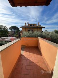 Loc. Pantano - appartamento in villa bilivello al 1°piano, con accesso carrabile e pedonale: soggiorno con angolo cottura, disimpegno, camera, cameretta e bagno. Open space mansardato di 20 mq con servizio. Due balconi, di cui uno in parte verandato con barbecue, ripostiglio sottoscala e giardino, in parte mattonato, di 140 mq. 3 posti auto interni scoperti. L'immobile di trova a 1 km dalla fermata metro C di Pantano e dai supermercati e a circa 2 km da banca, posta e farmacia.